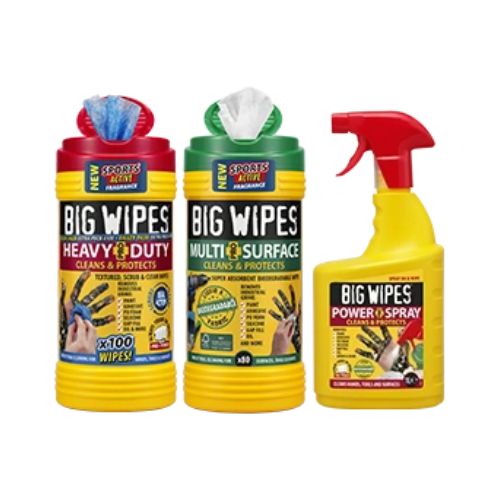 מארז Big Wipes שכולל מטליות לידיים, מטליות למשטחים וספריי ניקוי לכיסוי כל סוגי הלכלוך בשטח, במטבח וברכב