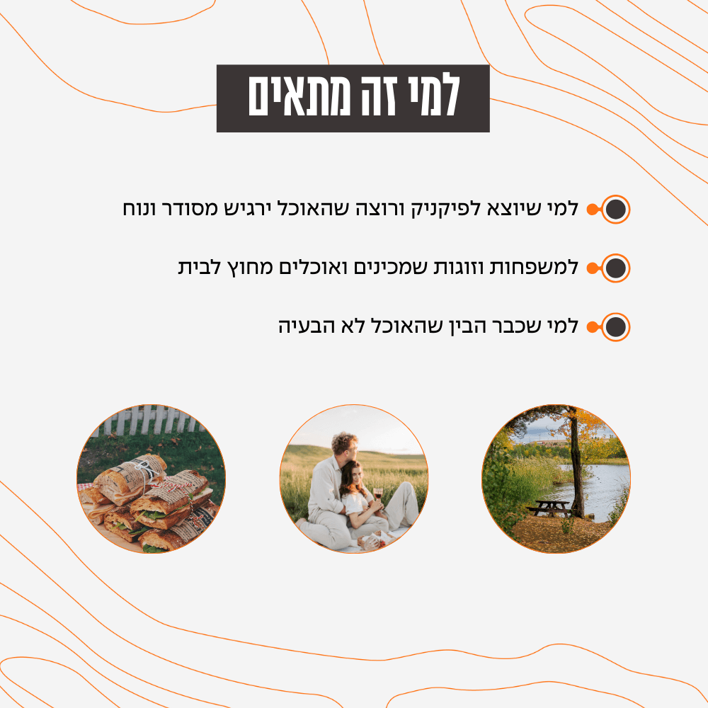לזוגות משפחות וקבוצות שיוצאים לפיקניק קמפינג או ארוחות שטח.