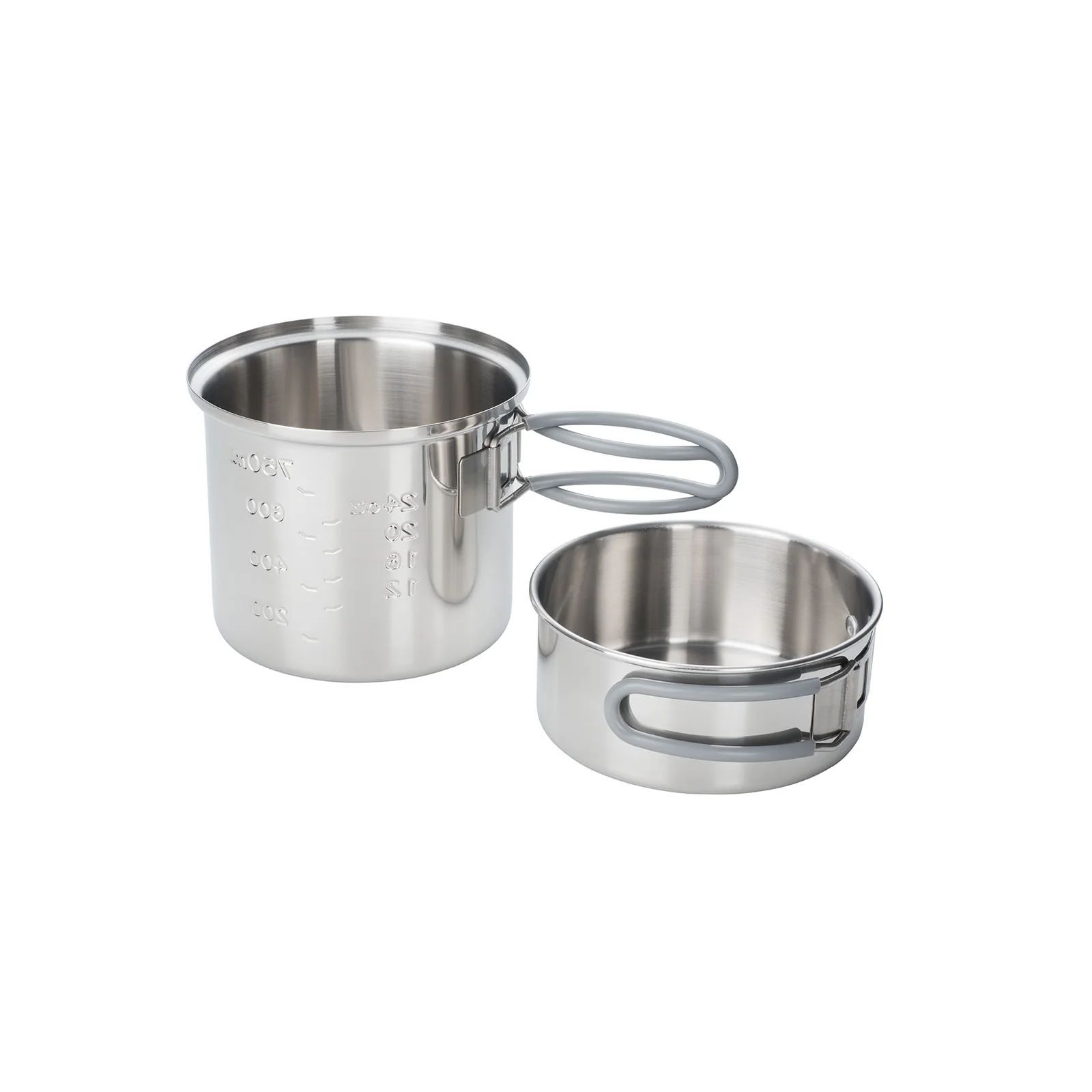 שני סירים עם ידיות מתקפלות ושק רשת ייעודי לנשיאה מסודרת